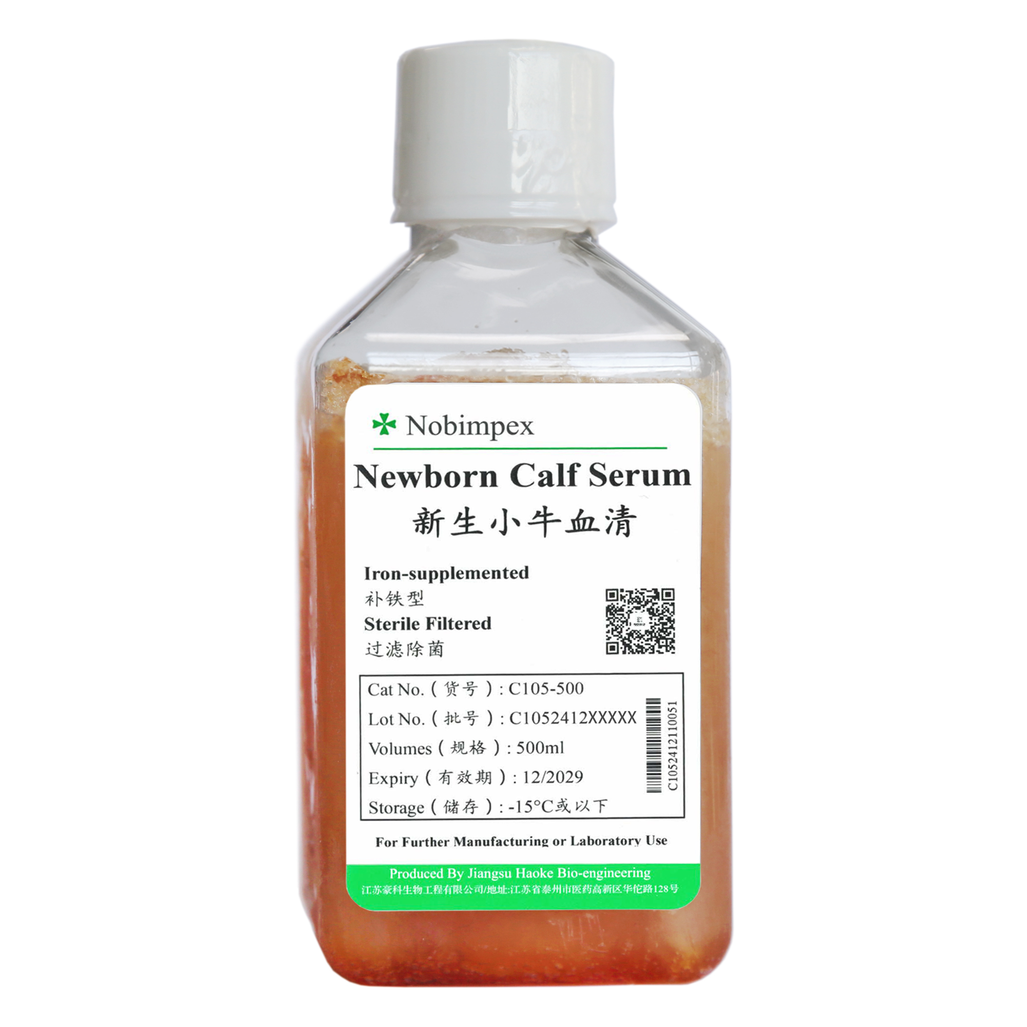 Iron-Supplemented Newborn Calf Serum is nutrient-rich with added trace iron, containing 3-4 times higher bioavailable iron and transferrin than fetal bovine serum (FBS) or horse serum, meeting cellular iron demands and enhancing cell growth.
