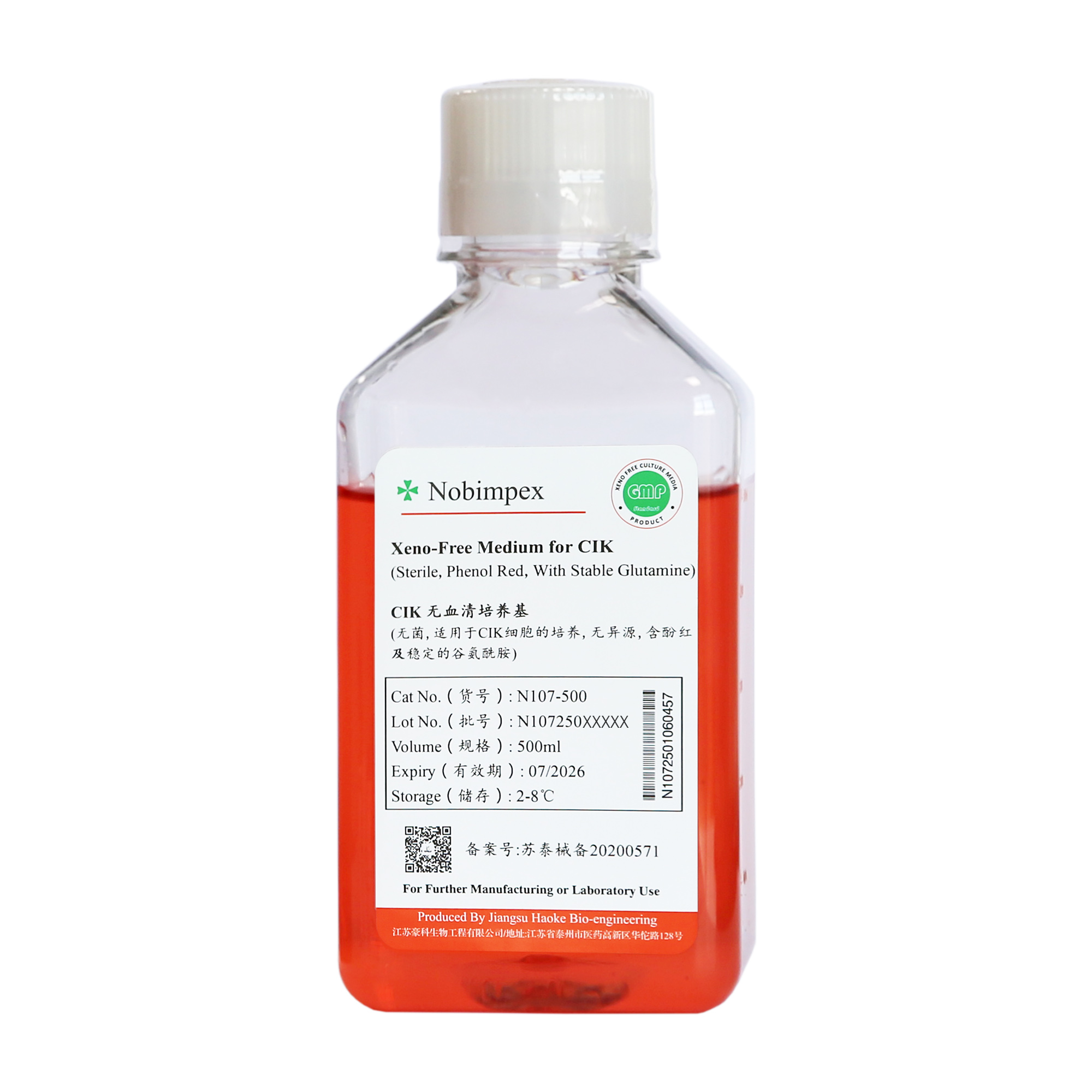 Nobimpex N107 is a serum-free and Xeno-free medium specifically designed to support the expansion of cytokine-induced killer cells (CIK cells) from human peripheral mononuclear cells (PBMCs).