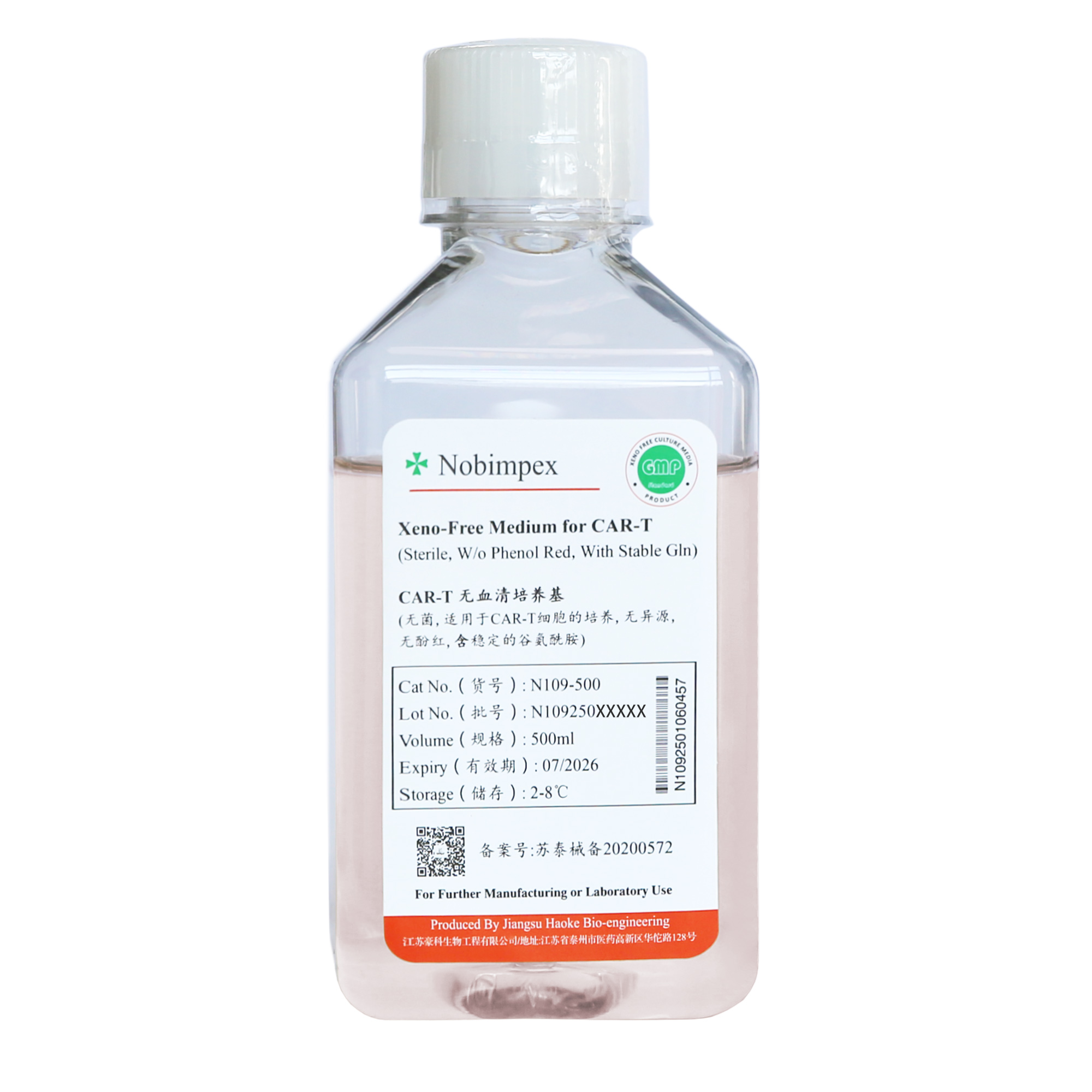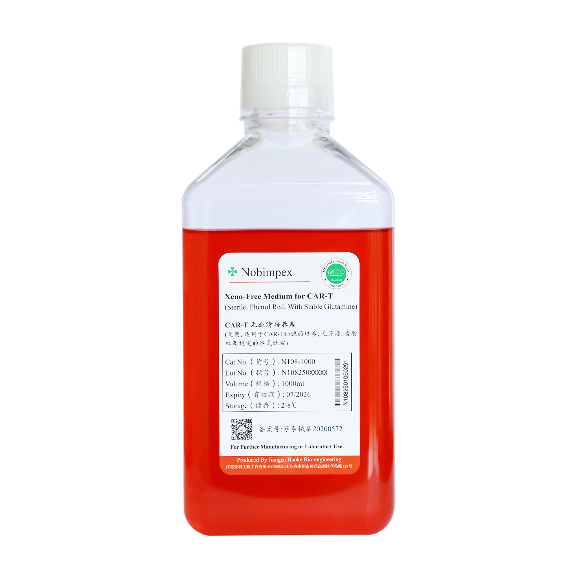 Nobimpex N108 is a serum-free and Xeno-free medium optimized for the expansion of chimeric antigen receptor T cells (CAR-T) from human peripheral mononuclear cells (PBMCs) or isolated CD3 + cells.