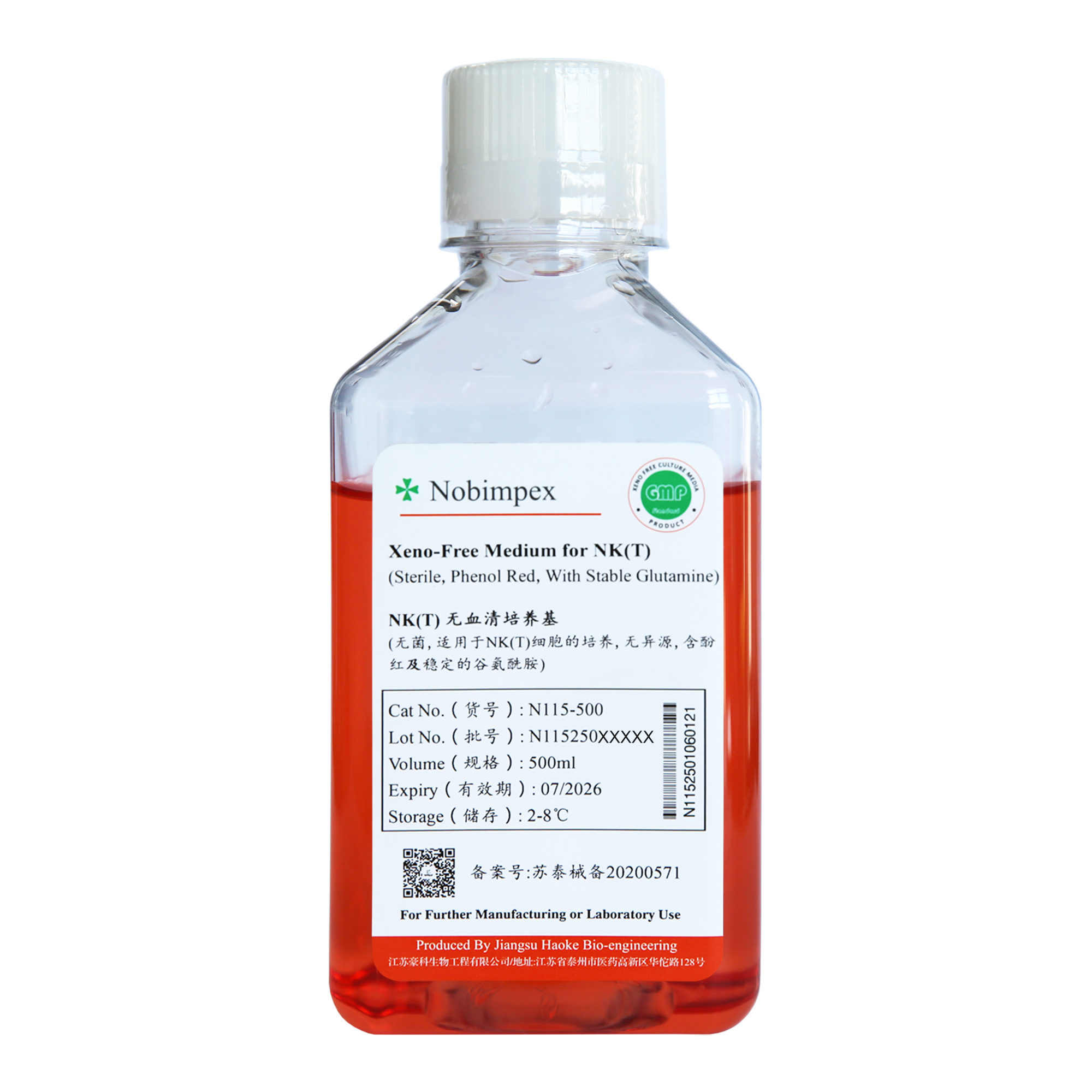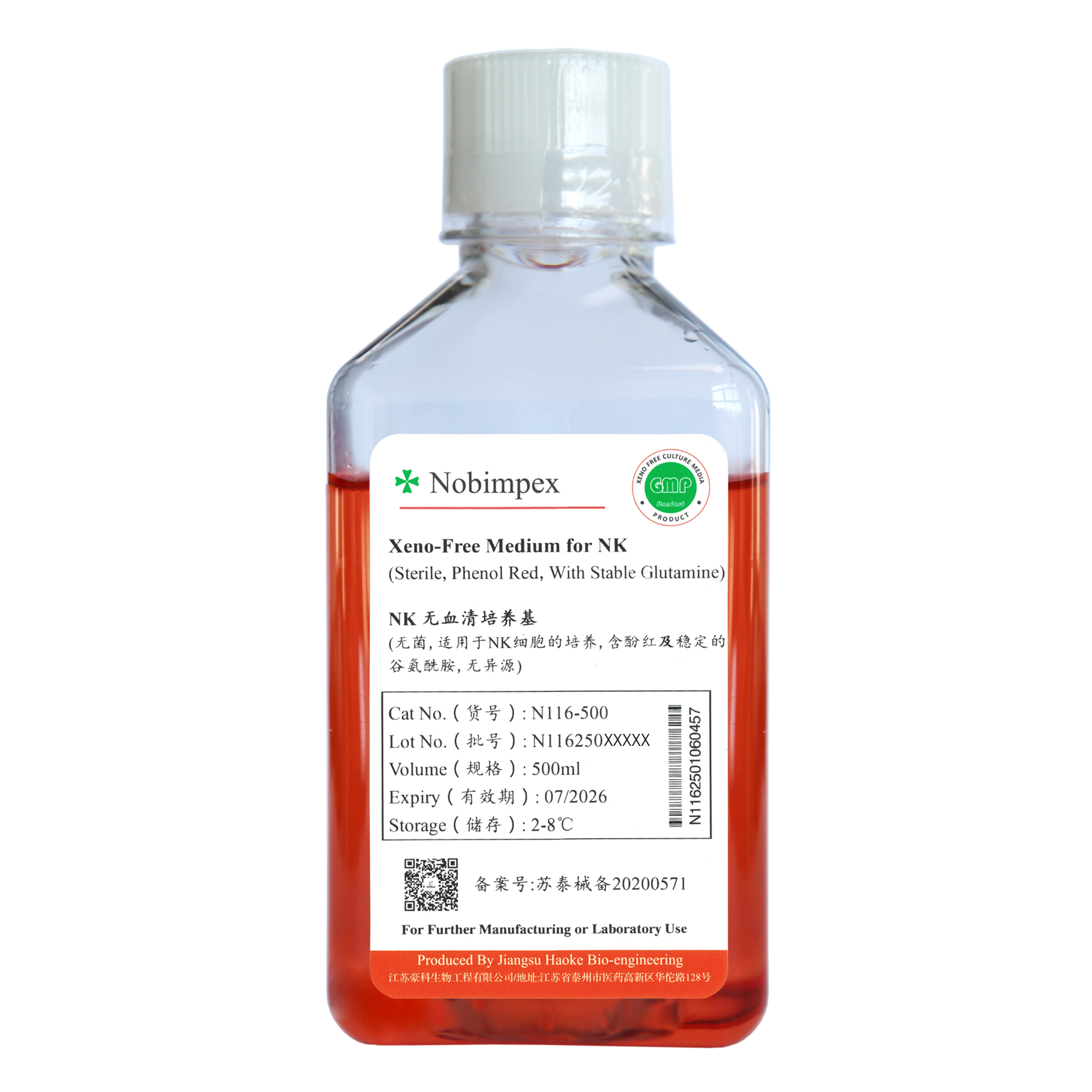 This medium is a serum-free formulation developed by our company specifically for the in vitro culture of human natural killer (NK) cells and hematopoietic stem cells. It is xeno-free, devoid of animal-derived components, and contains no exogenous stimulatory factors or undefined additives.